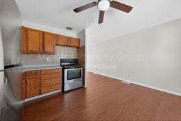 Step inside and enjoy a sun-filled living area with beautiful flooring and a layout that feels open and welcoming. The kitchen features warm wood cabinetry, stainless steel appliances, and plenty of counter space, making it perfect for both everyday meals and weekend cooking.