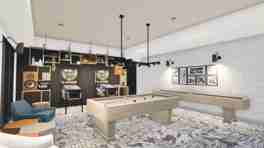 Gaming Area with soft seating, dining table, shuffleboard, pool table