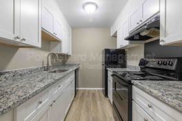 This spacious three-bedroom, two-bathroom apartment features beautiful wood-like flooring throughout, a galley kitchen, and ample storage space. Estrella at Kiest is a recently renovated apartment community in the Oak Cliff area of Dallas.