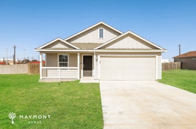 347 Agave Cir offers 4 bedrooms, 2 bathrooms, and 1,667 square feet of single-level living in Jourdanton, TX. A covered front porch and attached two-car garage create a welcoming first impression, while the interior opens into a wide living area designed to feel bright and open. Light-toned flooring runs throughout the main living spaces, enhancing the natural flow and making the layout feel expansive from the moment you enter.