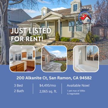 Don't miss out on this charming 2,065 sq. ft. 3 bedroom, 2 bathroom home off of Dougherty Rd. The home is located in a small cul de sac in the highly desirable Gale Ranch area of San Ramon. The home offers a fully carpeted family room and formal dining room with high ceilings and large windows for great natural light. The kitchen offers an open layout with a center island, dual ovens, and tons of cabinet space. Adjacent to the kitchen is a small dining area and the bright living room space with built-in shelving, a desk space and a cozy gas fireplace. Down the hall from the kitchen is the fully carpeted master bedroom that comes with two walk-in closets, and the ensuite bathroom. The master bathroom offers dual sinks, a standing shower and separate bathtub, and private toilet room. The second and third bedrooms are fully carpeted and share a hallway bathroom with a tub/shower combo. The house comes complete with a separate laundry room and 2-car garage. The neighborhood is close to premier San Ramon City Center, Bishop Ranch Park, San Ramon Community Center and Dublin/Pleasanton business parks. It is also located in the top-rated and sought-after San Ramon Valley Unified School District.