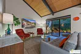 **** Monthly Rates: November & December: $4,000 / January to April: $5,000. May to October: $3,000. Availability: Now through 11/09/2025, then again on 4/12/2026 through the 2026/2027 Season. **** Discover the ultimate in desert living with this exclusive, beautifully appointed townhouse condo, available for a 30-day or longer stay. Perfectly blending Mid-Century charm with contemporary sophistication, this residence offers an ideal getaway in the heart of Rancho Mirage's coveted Small Mountain community just moments from Palm Springs and the world-class dining and shopping of El Paseo in Palm Desert. With three bedrooms (including one conveniently located downstairs) and two modern, high-end bathrooms, this updated home provides everything you need for a comfortable extended stay. The spacious, open floor plan boasts vaulted, beamed ceilings that add character and warmth, while the seamless flow between the indoor and outdoor spaces creates a true sense of relaxation. Step outside to your private patio oasis, complete with a retractable awning and night-lit landscape, where you can unwind against the stunning backdrop of the desert mountains, perfect for savoring the serenity of the evenings or soaking in the warm desert days. For those who enjoy cooking, the gourmet kitchen will inspire culinary creativity with its premium cabinetry, stone countertops, stainless steel appliances, and an imported Bertazzoni gas range. Whether you're preparing a quiet meal at home or entertaining guests, the kitchen is fully equipped to meet your needs. The third bedroom, set up as a den/office, is perfect for remote work or peaceful reflection during your stay. Thoughtful touches like ample storage throughout, a dedicated laundry room and a spacious detached two-car garage add to the convenience and ease of extended living. Small Mountain is an intimate, resort-style community of just 70 homes, complete with amenities designed for relaxation and leisure. Enjoy access to two pristine pools, relaxing spas, tennis courts, and pickleball courts. This exceptional property is perfect for a seasonal getaway and offers the ideal space for those looking for a 30-day retreat or longer stay in one of the desert's most desirable locations. Whether you're here to escape, recharge, or enjoy all that the Palm Springs area has to offer, this luxurious residence promises a stay of unmatched comfort and convenience.
