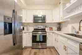 This fully furnished property is available for mid and long-term stays. Rates are subject to change based on seasonality and length of stay. Nestled in the heart of Carmel Valley, this charming ground-floor condo is your gateway to San Diego's coastal beauty and vibrant lifestyle. With two bedrooms, two bathrooms, resort-like amenities, and a pet-friendly policy, it's the perfect spot for families, friends, or professionals seeking a peaceful yet convenient retreat. Just a short drive to Torrey Pines State Beach as well as multiple shopping centers, you'll find stunning hiking trails, water activities and a fantastic selection of dining and shopping options nearby. Inside, the living room invites relaxation with a comfy couch, a flat-screen TV, and sliding doors that lead to a quaint front patio with seating for two. The adjacent dining area features a table for four, perfect for shared meals or game nights. A light-filled, modern kitchen boasts stainless steel appliances and is fully equipped to meet all your culinary needs. Bedroom 1 offers a king bed, dedicated workspace and a flat-screen TV, while bedroom 2 includes a queen bed, desk, and chair, ensuring comfort and productivity for all guests. A bonus queen pull-out couch in the living room accommodates two additional sleepers. One bathroom features a convenient combo shower/tub and the other has a sleek shower. Additional perks include mini split systems for heat, A/C, and dehumidifier in the living room and all bedrooms, quiet high-speed internet, in-unit laundry, and a designated carport parking spot.