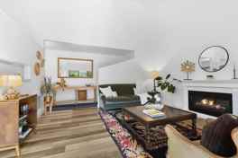 This updated 1-bedroom, 1-bath condo offers 790 square feet of comfortable living with vaulted ceilings that enhance the open, airy feel, stylish luxury vinyl plank flooring, in-unit laundry, and a balcony showcasing lush hillside views.