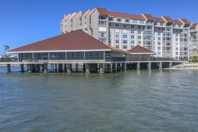 In the heart of Dunedin! Beautiful views of Dunedin Marina and Intercoastal. Spacious end unit , 2 bedroom, 2 bath, luxury vinyl flooring thru-out in this open and airy condo. Fully furnished, located on second floor, a rare outdoor side large balcony, newer hurricane windows, freshly painted, and the building has elevators. Resort living at its Best. Walk to Marina, Downtown, Restaurants, parks, and festivals, close to beaches, shopping, and airports. This community is a 55 + community, No Pets / No Smoking. Annual rate $ 2650, if seasonal, rates will apply plus tax, six month minimum association.