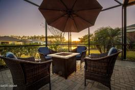 Seasonal Rental with HOT TUB and GOLF CART available in Latitude Margaritaville, a 55+ Resort Style Community in Daytona Beach! This rarely available THREE Bedroom Antigua on a water lot is close to the amenities in the 'Historic District' Phase ONE. This FURNISHED three bedroom home is available for seasonal rental from April 15th - October 15th. All-inclusive lease includes utility credit, WIFI, Hulu streaming with 100s of channels, Golf Cart and Hot tub! Upgraded interior finishes including: 42'' upper kitchen cabinets, lower pull outs, quartz countertops, Stainless Steel appliances, upgraded tile floors, 8 ft doors throughout. Primary ensuite bath includes quartz countertops & seamless shower doors. Whole house blinds, 5 1/4'' baseboards, Garage shelving, utility sink, and water cutoff valve. Enjoy sunset water views on the extended, screened lanai from the 5 person hot tub! Dog-friendly. Want to 'try before you buy?' Look no further, and welcome home!