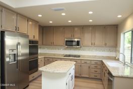 Beautiful and highly maintained home behind the guard gates of Rancho Conejo Village. This 4+3 home with downstairs office has stunning new luxury vinyl flooring, freshly painted interior, high baseboards and plantation shutters throughout. Light and bright with lots of windows and natural light. Large living room with soaring high ceilings and separate formal dining room. Huge upgraded kitchen features new painted cabinetry, granite counters with tile backsplash & glass inlay, island, pantry, lots of cabinets and counter space, high end stainless steel appliances including double oven, new gas cooktop and an eat-in breakfast nook surrounded by windows. Family room with gas fireplace and slider to backyard. Large primary bedroom with ceiling fan, 2 closets (a walk-in closet & another closet) and an ensuite bathroom. Spacious primary bathroom includes sunken tub, separate shower stall with glass enclosure, dual sink vanity and lots of storage. Nice size secondary bedrooms and upstairs large bathroom with dual sink vanity and shower/tub. Downstairs office with slider to backyard. Indoor laundry room with washer, dryer and lots of cabinets. Nice size backyard with large grassy area, nice landscaping and concrete covered patio. 3 car garage and gated community. Great neighborhood with multiple pools, spas, close to parks and award winning schools. Gardener included. Come make it yours!
