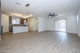 This new build features a split floorplan with porcelain wood plank flooring throughout. It comes with all appliances, including a washer/dryer and built-in microwave with air fryer. The open great room, large island, and beautifully landscaped backyard with mountain views, artificial turf, fruit trees, and extended paver patio make it ideal for entertaining. Additional amenities include walk-in closets, a spacious primary bedroom, wheelchair-accessible primary bedroom & bath doors plus state of the art; electric car charging outlet, remote operation of thermostat & garage door. Convenient to DMAFB, parks, & Pima community college