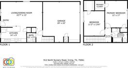 2 bedroom 1.5 bath duplex FOR LEASE in convenient south Irving location. Recently updated and move-in ready. Both bedrooms upstairs. Large walk-in closets for plenty of storage space. Rear entry 2 car garage with utility hookups in garage. NO PETS. HURRY!