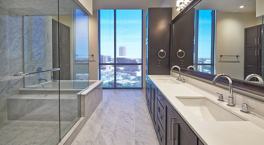 This luxury apartment community offers an exceptional urban living experience in the heart of Dallas. With stunning views of the skyline and the Trinity River, residents enjoy a modern, sophisticated lifestyle in a vibrant neighborhood. The spacious, open-concept floor plans feature high-end finishes, including stainless steel appliances, quartz countertops, and wide-plank wood flooring. Expansive windows allow natural light to flood in, highlighting the sleek, contemporary design.