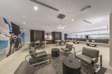 8th Floor Amenity Deck with a Wi-Fi Lounge, Private Workstation, a Dining/Conference Room, Full Catering Kitchen, an Indoor/Outdoor Flex Space, Game Room Area, and Fitness Studio
