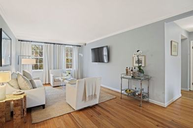 Hardwood floors run throughout the home, adding warmth and charm, while large windows bring in abundant natural light to create a bright and inviting atmosphere.