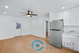 The modern kitchen is a chef's dream, showcasing sleek white shaker cabinets, quartz countertops, and stainless steel appliances. Stay comfortable year-round with split-unit air conditioning in both the living room and bedroom—perfect for those warm San Diego days.