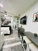 Enjoy a restful night's sleep on a comfortable queen bed, completed with memory foam mattress. The studio also features a large closet , dedicated work space and modern rainfall shower and body massage jets. Stay entertained and connected with a Smart TV and high-speed Wi-Fi.
