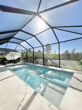 New pool, spa, pool cage, privacy screening, landscaping, kitchen and bathroom updates. This home is like new, a hardly lived in 2020 build, situated in the The Palisades. This is a gated maintenance-free community. The home has an open floor plan with tile flooring throughout the main living areas and luxury vinyl plank in all the bedrooms. The kitchen features stainless steel appliances, upgraded oven, custom built in range vent, microwave drawer, custom cabinets, valance trim, granite countertops, walk-in pantry, and a large island with room for seating. The sliding glass doors open up to the lanai and pool area, connecting indoor and outdoor spaces. The Primary Suite has two walk-in closets with built ins, double vanities, updated walk-in shower and a view of the pool and spa. The lanai provides ample privacy with newly landscaped areca palms and enhanced privacy screening around the perimeter of the pool/spa and side door. Residents have access to multiple amenities including a well-equipped gym and community pool. The home is a short drive to Lakewood Ranch Main Street and Waterside Place. Both areas offer opportunities for boutique shopping, dining and entertainment.