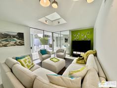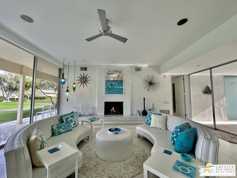 Originally designed by architect Richard Harrison in 1967 this Fantastic Mid-Century decorated 2 Bedroom 2 Bath plus den unit with Fireplace open floor plan and private patio for inside/outside living and entertaining. Adjacent to Ted Robinson 18 hole designed Golf Course and steps away from one of Seven Lakes 15 Community Pools with Spa and Kitchenette to entertain family and friends. Enjoy Tennis, Pickle Ball or dinning in the Clubhouse. Call Agent for availability,