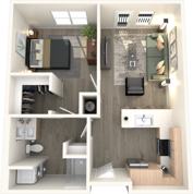 This one-bedroom, one-bathroom apartment located in a beautiful complex right in the middle of refurbished Downtown Midvale has all of the comforts and modern amenities you need. Everything you want is within walking distance: coffee shops, art, restaurants, and more.