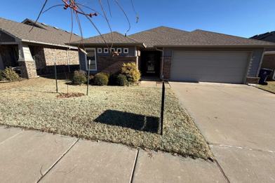 This open floorplan has a contemporary design with the living, dining and kitchen open to each other. It has 3 bedrooms 2 bath and a study or a 4th bedroom. The kitchen features stainless steel appliances, gas cook range, microwave, quartz countertops, glass tile backsplash, and a breakfast bar. Two car garage with a storm shelter, stepping into the home to the utility/mudroom. Enjoy sitting on the covered back patio with beautiful scenery