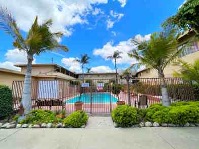 The beautiful Courtyard Villas in Ontario features a large lushly landscaped center courtyard area with fountain, manicured landscape and pool. Property also features two community laundry facilities, gated parking area with assigned covered carports with storage. Extra large upstairs 2 bedroom, 1 bathroom unit. New carpet in living room, bedrooms and hallway areas and tile flooring in bathroom and extra large kitchen area. Two tone paint with custom baseboards. Gas range, window coverings, and lighting fixtures. Parking spot available for $45/Month.