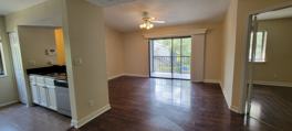 This 2 bedroom, 1 bathroom second floor condo has an open concept design with laminate flooring that extends throughout the entire home. The unit offers plenty of natural lighting and has a screened in porch. Relax and unwind in the primary bedroom that boasts an walk-in closet. Washer and dryer hook ups in laundry closet. Convenient location just minutes away from popular grocery retailers like Aldi, Walmart, and Target.