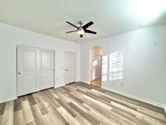 This unit features brand-new vinyl flooring, an attached 2-car garage, and modern comforts throughout. The downstairs bedroom includes a patio with serene views and a full shower, while the upstairs primary suite boasts a spacious shower, double sinks, and two large closets. The kitchen, equipped with a stainless-steel refrigerator and dishwasher, opens to a cozy living area and an additional outdoor patio, perfect for entertaining. Amenities include a community pool, Jacuzzi, and barbeque area. A washer and dryer are conveniently located downstairs, and central AC & heat, along with a tankless water heater, ensure year-round comfort.