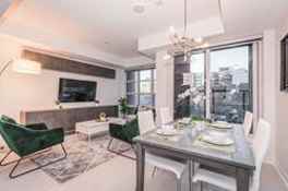 All-Inclusive (Internet/Hydro) And Professionally Furnished Kingly Condos In The Heart Of King West! Move-In Ready, Just Bring Your Clothes! Brand New Gorgeous Boutique Building And Central To Everything Downtown, With Toronto's Best Restaurants, Night Life, Cafes On Your Door Step. Minutes To Financial District, Queen West, Waterfront & Liberty Village! High End Furniture, Custom Shelving And Brand New Samsung 65 Inch Tv Included.