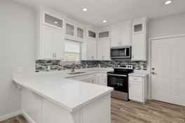 This new construction property has top-of-the-line amenities and features including a premium security system, brand-new appliances, and covered parking with LED lighting. The spacious open floor plan is adorned with large windows offering ample natural light throughout, highlighting the wood-like tile flooring, recessed lighting, high ceilings, and access to the backyard area.