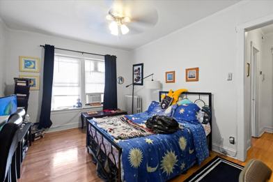 Sunny and spacious Studio facing beautiful courtyard building in lively Lakeview. Hardwood floors throughout, wrap-around bar-height kitchen, mini blinds, ceiling fan in living space, and spacious floor plan with walk-in closet. Beautifully landscaped courtyard building, on-site laundry, storage, bike storage, cable ready, intercom entry, and heat & WIFI included. Close to park, lake, shopping and restaurants, and transportation. $75/person Application Fee. $300/person Move-In Fee. $20 per month cat rent, if 2 cats then $30/month.