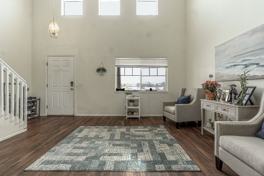 The main level also includes convenient laundry facilities and a guest bathroom, ensuring everyday ease. Upstairs, you’ll find a comfortable loft area, two guest bedrooms, and a generous primary suite boasting vaulted ceilings and a well-designed private bath.