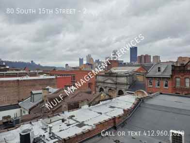 Description: Amazing 1-bedroom, 1-bathroom apartment for rent just off Carson Street in the vibrant South Side. This unit occupies the second and third floors of a 3-story building. The spacious living area features beautiful hardwood floors and abundant natural light. The kitchen comes equipped with a fridge, stove/oven, microwave, and dishwasher. The bedroom, located on the third floor, is carpeted and showcases exposed brick. The bathroom and laundry room (with washer & dryer, tenant-maintained) are also on this floor. A spiral staircase leads to an impressive private rooftop deck. The unit includes central A/C, and parking is on the street.