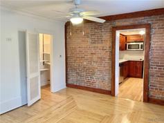 Bright, bi-level apartment in a classic Greek Revival Victorian building on historic Johnson Park. Located at the rear, this unit has 2 Bedrooms and 1 1/2 Baths. Downstairs contains the Living Room with maple floors, exposed brick and a ceiling fan. Adjacent is the Kitchen and Half-Bathroom. Upstairs holds 2 Bedrooms with good storage. In-unit Laundry is located in the full Bathroom. Outside is a large, shared green space. The building is located conveniently near Downtown; Allentown and the Medical Campus a short distance away. No smoking; small pet ok.