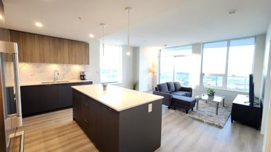 Amazing and unobstructed view of beautiful British Columbia! Be the first to live in this brand new fully furnished spacious 1 bed + den, 1 bath condo in The Towers at Latimer Heights Village/Willoughby development in Langley. Shopping and restaurants are just steps away. Fast and easy access to Hwy 1 or just a 10 minute walk to Carvolth Exchange Park and Ride Bus Loop. Got an EV? No problem, the parking stall is ready for your EV Plug. No smoking/vaping/drugs and sorry, no pets.