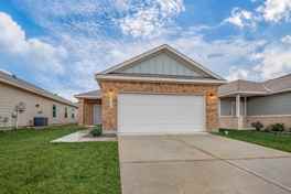 Welcome to the amazing Northpark Woods subdivision in Porter! This beautiful three-bedroom home is just a short walk away from the neighborhood playground, splashpad and picnic pavilion. There's a decorated walkway to your covered front patio and a wide-open bright space as you make your way in through the front door. The entryway opens into your living room/dining space with stylish wood floor tiling leading into the kitchen that has stainless steel appliances, granite countertops, cabinets complete with hardware and a pantry for storage. Smart home app features available such as an Echo Show 15in touch screen in the living room, Smart lawn watering system, Smart garage door, Smart thermostat, programmable motion sensors and programmable schedule for driveway lights. The primary bedroom is tucked away towards the back of the home and has a sliding barn door leading into the en-suite full bath with a large standup shower and walk-in closet. The laundry appliances are included as well!