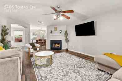 This contemporary two-story home offers a harmonious blend of modern design and everyday convenience. Featuring three spacious bedrooms, two and a half bathrooms, and an expansive game room, the residence provides ample space for relaxation and daily living. The bright and inviting living area, enhanced by a cozy wood-burning fireplace, while the kitchen offers ample cabinetry and a convenient breakfast bar. The primary suite serves as a tranquil retreat with dual vanities and a luxurious soaking tub. Outside, the private backyard stands out with its spacious patio and well-maintained lawn, perfect for enjoying the outdoors. With its stylish design and thoughtful layout, this home is perfectly suited for comfortable living.