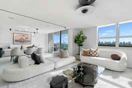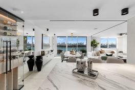 Step Inside With Me! This curated combo residence represents the finest interiors on West Avenue with perfect skyline views. The designer renovation by Sylvia Carrère takes the salon's millwork to another level. Ribbed, louvered, and back-lit, the white oak is showroom quality. Furnished by top European brands, the magazine-worthy appointments include Italian wood flooring, Caruso closets, and recessed lighting. The culinary experience features a wine cellar, custom buffet, and china cabinet. The primary suite shines with a specialty media wall, a contemporary bath setting, office nook and private terrace. With all living spaces and guestrooms facing the bay, the Western light is impeccable. A brand new park and close proximity to South of Fifth make this Floridian experience unmatched. Weekly housekeeping included.