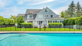Be close to everything in this fully renovated, three-story home with an open layout & multiple living spaces. The first level features a covered front porch, foyer, living room, sunroom with deck access, formal dining, eat-in kitchen with island seating for 4, & a mudroom with a full bath and laundry. A private staircase leads to a bonus room, ideal as a home office or den. The second level includes 3 bedrooms, 3 full baths (2 ensuite), & master suite with a balcony, double vanity, walk-in shower, & soaking tub. An oversized family room with a wet bar, sectional, & TV, plus a cozy den with pocket doors, completes the level. The third level offers a bedroom & full bath with a sauna. Outside, enjoy the expansive back deck with lounge seating, dining for 8, a Weber grill, & heated gunite pool on 1 acre. Additional features include an outdoor shower, 1-car garage, playset, & beach access.