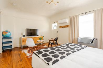 Looking for a cozy spot in N Portland? This Fully furnished studio apartment has lots of vintage charm and original character, but with modern amenities. Close to the Mississippi Ave neighborhood, where you can explore unique shops and tasty eats. Getting around is easy with nearby public transit, super close to bus lines and MAX light rail public transportation. Plus, it comes with all the perks: shared full size washer/dryer, off-street parking spot, and all utilities included—no surprises here! Beautifully rehabbed studio space featuring original hardwood floors, fresh paint, new fixtures and appliances. Includes a dedicated work space, high speed WiFi. Get a good night's sleep on the queen size bed with a hybrid gel infused memory foam mattress. Enjoy natural light in the inviting living room and whip up your favorite email in the fully stocked kitchen. Stream your fav shows on the smart TV, and never miss a delivery with the smart ring video doorbell.. Additional garage space available for storage, please inquire. We’re pet friendly with a shared fully fenced back yard and extra storage in the utility room. Amenities: -Stylishly furnished - Fenced Backyard (shared) -Off street parking spot. -Blackout curtains - Fully stocked kitchen - Full sized washer/dryer set (shared) - HighSpeed WiFI w/ dedicated work space - Wall heat/air conditioning - Hardwood floors - Ring Video Doorbell - Smart TV - Dedicated work space - Bathtub - Fully stocked Kitchen - Blackout curtains - Full size washer/dryer included - All utilities & yard maintenance included Neighborhood: Piedmont Great neighborhood, close local restaurants, coffee shops and Kenton and Mississippi neighborhoods. Walk Score: 77 / 100 (Very Walkable) Transit Score: 54 / 100 (Good Transit) Bike Score: 96 / 100 (Biker's Paradise) Stay as long as you need, with flexible 1-6+ month lease options customized just for you. Don’t wait— message us today to learn more or book your stay! We offer 3D virtual & video tours of the property so you can get a tour without having to go anywhere! We're also happy to arrange an in-person tour just to reach out. At Cedar & Porch Properties we offer stylish, fully furnished mid term 30+ day stay rentals in Portland, OR with all the comforts of home. We offer flexible lease terms—from short-term to extended long-term stays. We cater to our guests' diverse needs, including traveling medical professionals, remote workers, pet owners, remote workers, and those facing relocation or displacement. We also work with families encountering home repairs and/or relocation and work directly with temporary housing companies and insurance companies and policyholders in need of temporary housing.