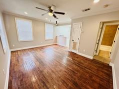 Charming, updated 2 Bed/1 Bath home for rent. Amenities include Central AC, kitchen island/bar, refrigerator, stove, dishwasher, stackable washer and dryer, hardwood and ceramic tile floors, ceiling fans, recessed lighting in kitchen and living room, sidewalk, paved driveway, and large fenced in backyard.