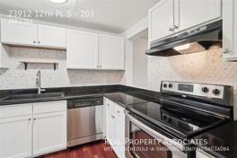 - Modern kitchen with stainless steel appliances, granite countertops and extra storage