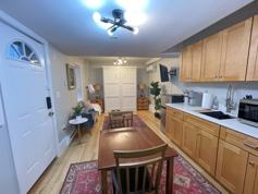 Renovated unit features a private direct entrance, hardwood floors, high ceilings, kitchenette with granite countertops, Convection oven, hotplate (unit does not have a stove or oven), large renovated tiled bath with glass shower enclosure, queen size murphy bed, Flat screen TV, dining table and outside patio with table and chairs. Unit features central air, heating, and in-unit laundry. On-site parking is available for rent.