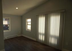 Ascend to the second floor to find a generously sized bedroom at the front of the house and a master bedroom at the rear, complete with a full bathroom. The bathroom is also accessible from the hallway. The master bedroom boasts a vaulted ceiling and a patio door that opens to a Juliet balcony. The third large bedroom is located on the top level.