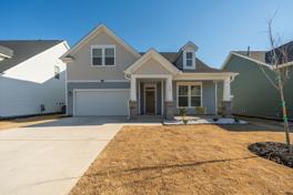Entering the home from your covered front porch into your spacious entry you have two bedrooms and full bath directly to your right. Continuing down the hall , the kitchen is a chefs dream with beautiful light grey cabinetry, light granite countertops, center island with sink for extra prep space and additional seating, tile backsplash, under cabinet lighting, and stainless steel appliances including a gas range/oven and built in microwave. The large living room is perfect for entertaining and features high ceilings, and tall windows for lots of natural light. Off the breakfast room is a covered porch with ceiling fan that looks out onto your backyard making it a perfect place for those Summer cookouts. The Primary Suite is situated off the living room and features double vanities, walk in closet and amazing tiled shower with built in seat. Upstairs you have an additional bedroom with full bath along with a huge bonus room perfect for a home office or game room. All our homes feature our Smart Home Technology Package including a video doorbell, keyless entry and touch screen hub.