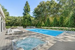 Nestled on 1.9 acres between the coveted Amagansett Ocean beaches and bay, this serene oasis combines style, comfort, and unparalleled amenities with 3700 sq ft of living space. The property exudes sophistication with its beautiful natural stone and lime-washed walls, set against a backdrop of lush landscaping and vibrant hydrangeas. Newly renovated and boasting five spacious bedrooms and four luxurious bathrooms; every detail of this home has been meticulously curated. The outdoor area is nothing short of spectacular. The expansive deck features a 20x40 heated pool, a 6-person spa, and a convenient shower cabana. Entertain in style with an outdoor kitchen, generous dining table, sumptuous daybeds, a cozy sofa, and a stunning marble gas fire table. Enjoy even more amenities, including a Har-Tru tennis court, a wood-burning fire pit, a ping-pong table, and outdoor speakers. Step inside to find an open-concept layout that invites natural light through high ceilings, skylights, and glass sliders. The main level offers four bedrooms: primary en-suite king, junior en-suite king, two queen rooms. The great room features a wood-burning fireplace, an 85' Samsung Frame TV, and stylish eat-in kitchen. The lower level has a windowed gym with a Peloton and infrared sauna, a cozy lounge with a wet bar, a full bath, and the fifth bedroom with two queen beds. There is laundry on both levels, ample workspace, and Smart TVs in every room. Invisible speakers in the great room, ambient pool lighting, a two-car garage, central air, and a security system complete this retreat. Ideally located, this perfect getaway harmonizes tranquility with effortless access to beaches, shopping, dining, and transportation.