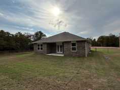 The Hartford floor plan features stylish wood-look tile flooring throughout, creating a warm and inviting atmosphere. The kitchen boasts White cabinets, stainless steel appliances, pantry and a tiled backsplash. The primary suite is complete with a walk-in closet, a double sink vanity and a tiled shower stall. Two additional bedrooms feature carpet and ceiling fans. Enjoy relaxing evenings on the back patio overlooking the wooded lot. Other features include sprinkler system, interior laundry room, fenced in backyard and 2-car garage. The community includes walking trails, basketball court, pavilions and fire pits. Now Open: Neighborhood Clubhouse, Community pool and Playground. Lawn Care Included, sodded front and side yard and within fenced in backyard area. Pets are case by case.