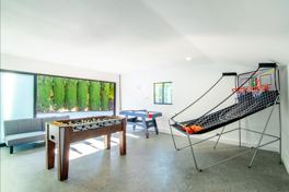 Welcome to your ultimate family retreat! This newly renovated home is crafted to deliver a luxurious experience. It showcases elegant furniture, a heated saltwater pool and spa, and a Tulum-inspired zone adjacent to the main bedroom. Upon entering, you'll be greeted by an open space that highlights a modern, fully equipped kitchen. This culinary delight features top-of-the-line appliances, including a 36-inch Monogram fridge, a 48-inch Fronto range oven with eight burners, a Kitchen Smith coffee machine, an island, and ample cabinets and counter space. The living room complements this experience with a smart 86-inch TV, a stylish sofa, and a glass door that opens entirely, seamlessly blending the indoors with the outdoors. The primary bedroom serves as a true sanctuary, complete with a king-size bed, a chic entertainment area featuring a 75-inch smart TV, a walk-in closet, and an ensuite bathroom. Another folding door leads to a cozy patio with comfortable seating, perfect for savoring a glass of wine with your loved one. The additional two bedrooms are furnished with queen-size beds and a queen-size air mattress to accommodate two extra guests. Step outside to explore the outdoor patio, an ideal venue for entertaining. It includes a new seating area, a dining table, a TV, and sun loungers for relaxation. Families with young children will appreciate the delightful patio playground designed for little ones. You'll also find a stunning saltwater and chlorine pool and spa, perfect for unwinding after a long day. Moreover, the garage has been transformed into a game room, featuring basketball, a poker table, ice hockey, and foosball, ensuring hours of fun for everyone. For your convenience, there’s also a Tesla charger (plug and cable) available for charging your electric car. Enjoy comfort, elegance, and relaxation in this beautiful getaway!