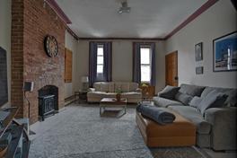 Enormous, sunny 2 bedroom and den usually used as a 3 bedroom share. Six rooms and plenty of closet space. Spacious living room with nonworking fireplace mantle, separate dining room and eat-in kitchen with stone counters, breakfast bar, stainless appliances, DW, gas range and refrig. High ceilings and ceramic tile floors throughout. New efficient gas boiler. 2 window air conditioners. Available January 1st. Laundry room onsite. Near restaurants, shopping, ferry, bus.