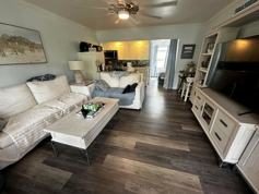 This ground floor unit has beautiful luxury vinyl flooring, crown molding, storage unit, small heater and FRESH PAINT. The living room has an oversized fan and a pull out couch with a top cushion that is memory foam for your guests. Nicely update kitchen has glass backsplash, white cabinets, breakfast bar, stainless appliances, Bosch dishwasher, Master suite has a queen size bed, room darkening shades and the en-suite has a tile shower, glass backsplash, white vanity with solid sink.