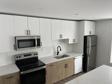 Our modern units offer style and convenience with a spacious layout. Each unit is equipped with stainless steel kitchen appliances, quartz counters, quality cabinets, in unit washers and dryers, over the range microwave, huge dining peninsula, large walk-in pantry, energy efficient windows and ductless mini split units.