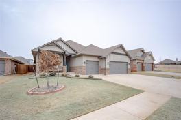 Available now! This four bedroom, two bathroom Craftsman-style home is available for lease in The Grove addition in Edmond. The home features a spacious open-concept design with a large living area that boasts a cozy fireplace and seamlessly connects to the well-appointed kitchen, which offers ample storage, an island with seating, and modern finishes. The home also includes a three-car garage, providing plenty of parking and storage space. Enjoy outdoor living with covered front and back porches, with the back porch featuring a fireplace, perfect relaxation and entertaining. The wood-fence backyard offers added privacy. Conveniently located near Grove Valley Elementary School, as well as shopping, dining, and entertainment options, with easy access to Hwy 74/Hefner Parkway and the Kilpatrick Turnpike. Lease terms: 12 month lease at $3200 per month with a $4800 security deposit. No pets allowed.