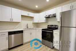 The renovated kitchen features stainless steel appliances — including a refrigerator, stove, and dishwasher — along with crisp white cabinetry that offers plenty of storage. Whether you're cooking for yourself or entertaining guests, this space blends style and convenience.
